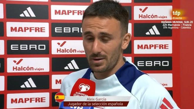 在西班牙4-0大勝保加利亞的世預(yù)賽中,勒沃庫森中場(chǎng)阿萊士-加西亞造成對(duì)手自擺烏龍,為球隊(duì)將比分?jǐn)U大為3-0,賽后他接受了RTVE的采訪。